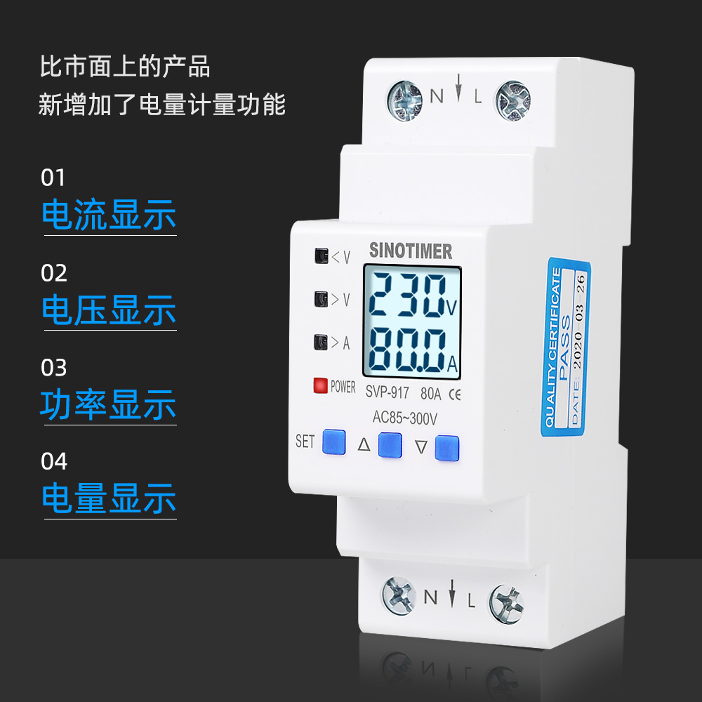 SVP917 intelligent self-duplex overpressure undervoltage protector 2P switch over-current overload over undervoltage protector 220V