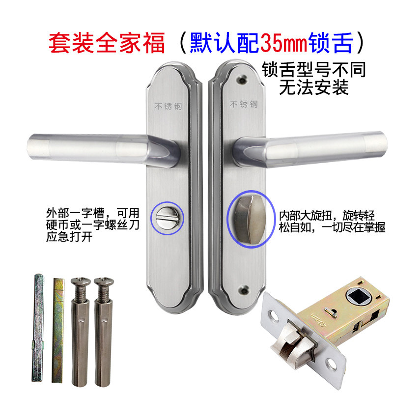 Stainless steel bathroom door lock toilet kitchen door handle bathroom single tongue bath keyless universal lock core