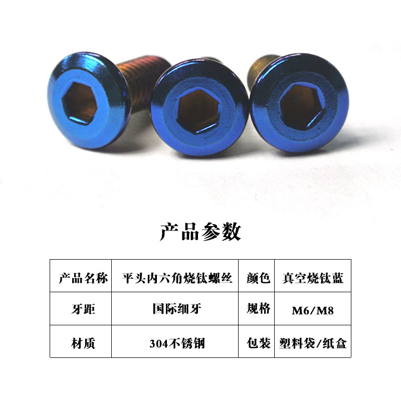Electric Vehicle Locomotive Retrofit 304 Stainless Steel Disc Brakes Flat Head Butt Screw M8 Burnt Titanium Blue Disc Brakes