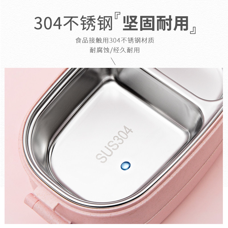 Blue- Single Layer Pink Double Layer - Send 304 stainless steel chopstick spoon three pieces - Pink Cup Send 304 stainless steel chopstick spoon three pieces - Single layer blue double layer
