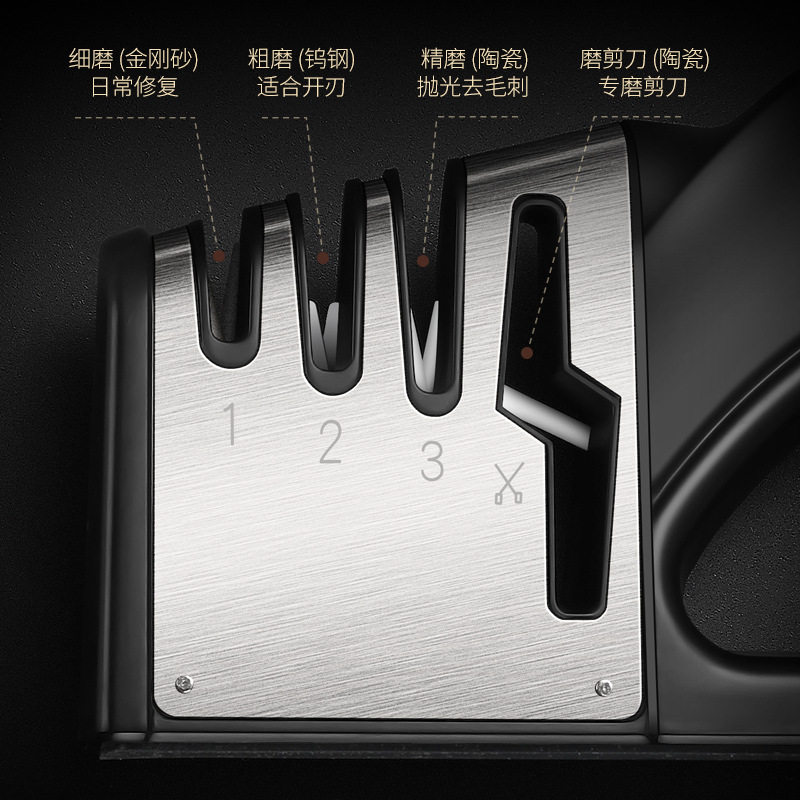New knife sharpener (four sections) all-steel sharpener black fox sharpener elegant black new four-in-one three-in-one black (color box)