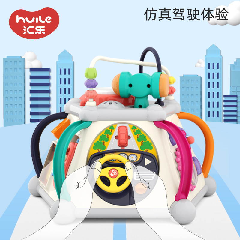 Huile Hand Drum Baby Toy Educational Children Early Education Hexahedral Music Tapping Drum 0-1 Year Old Baby 6 Months