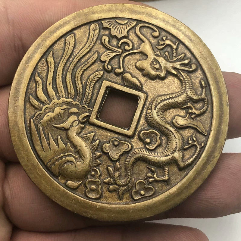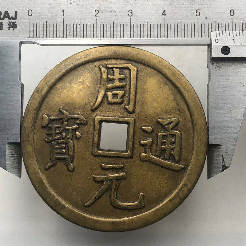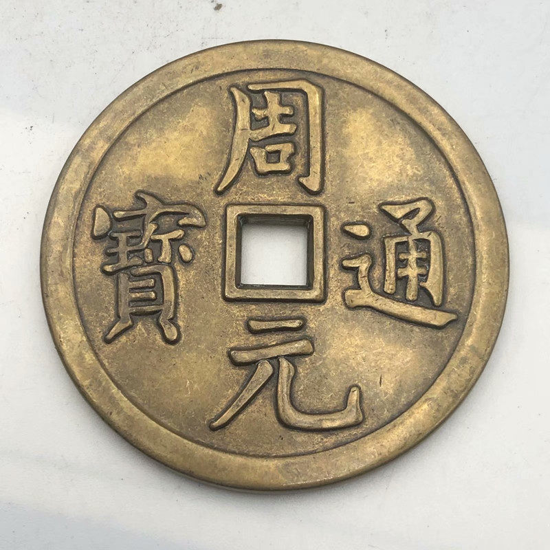 Ancient coins rare money to get tired of money Fang mouth big money Zhou Yuan Tongbao back Longfeng brass coins to spend money