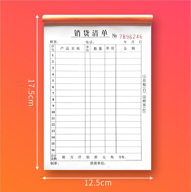 Sales list two-in-one sales list triple-four-link single shipment list book opening book customization