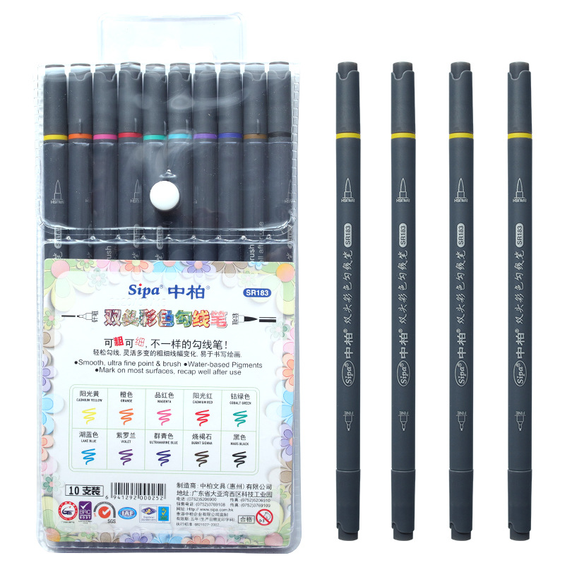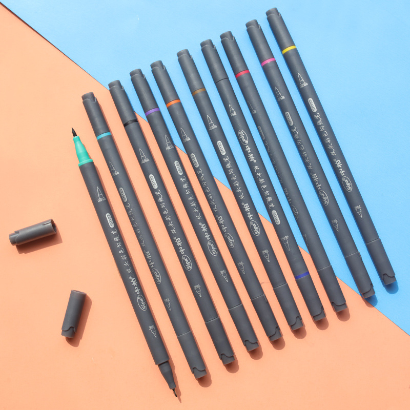 Middle Playing Double Head Colour Hooking Pen Sketching students with children drawing professional fine arts color Pupils sideline sketching black tectoners Pen Hand-painted Colorful Purchasing Line Pen Kindergarten Painting