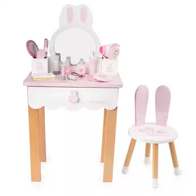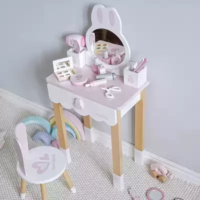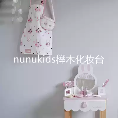 nunukids Beech makeup table super high three-mirror vanity dressing table stool annderu large Nordic style dressing table stool extra large stool large size stool