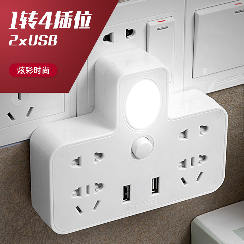 Home adapter with night light USB charging plug plug board one turn multi-porous multi-purpose function wireless socket