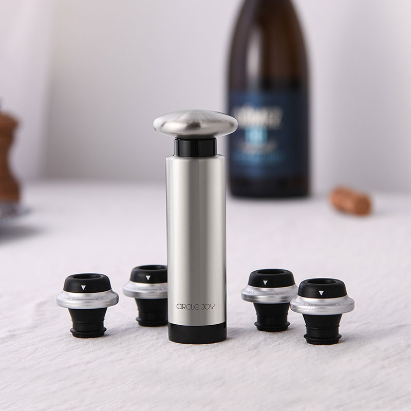 (Flagship) Stainless Steel Red Wine Stopper (Mini) ABS red wine stopper-Piano Black one Pump 4 Seen red wine Freshness Stopper Suit-Silver fully automatic red wine Refreshing Stopper-Black Red