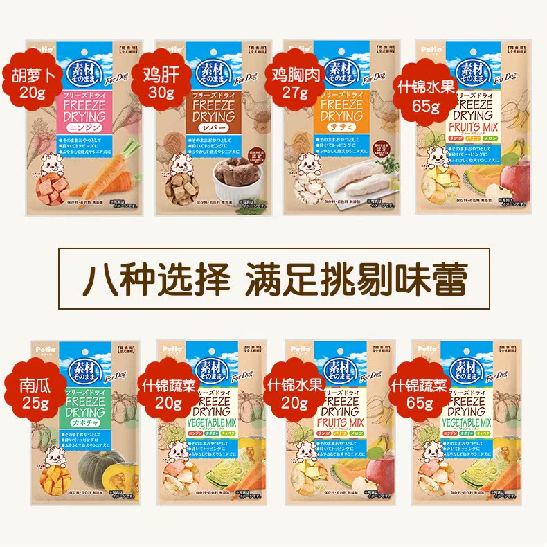 Petio Freeze Dried Dog Snacks Pumpkin Carrot Chicken Liver Chicken Breast Assorted Vegetables and Fruits Dog Training Rewards