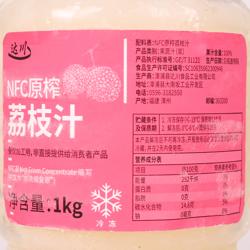 Dachuan NFC Lychee Juice No Added Lychee Freshly Squeezed Fruit Tea Mesh Red Frozen Juice Non Concentrate 1KG