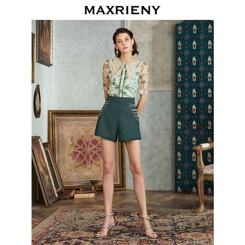 MAXRIENY2020 Summer New Fashion Elegant Printed Lace Tops Women's Half Sleeve Chiffon Shirt Western Small Shirt