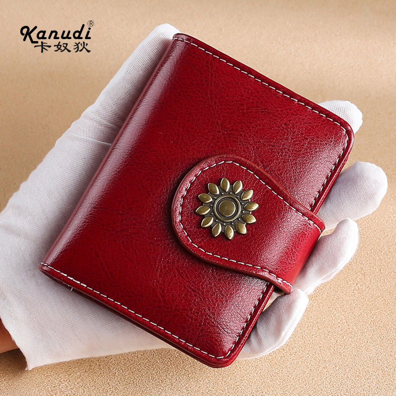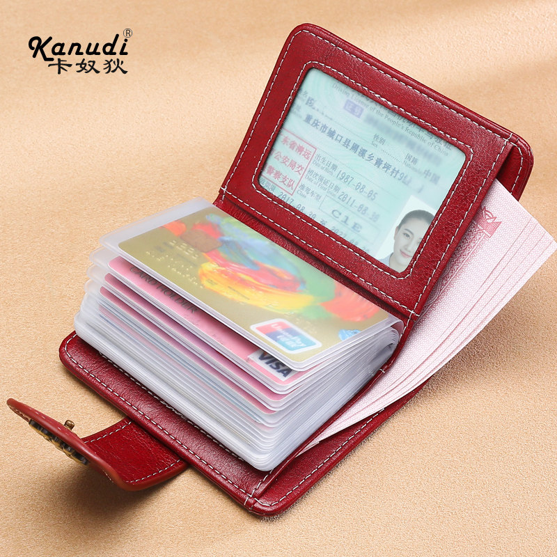 Card Bag Women Style Multi-Position Large Capacity Wallet Card Clip Genuine Leather Small Ultra Slim Theft Protection Brush Leather Clip Card Bag Cutting Sleeve