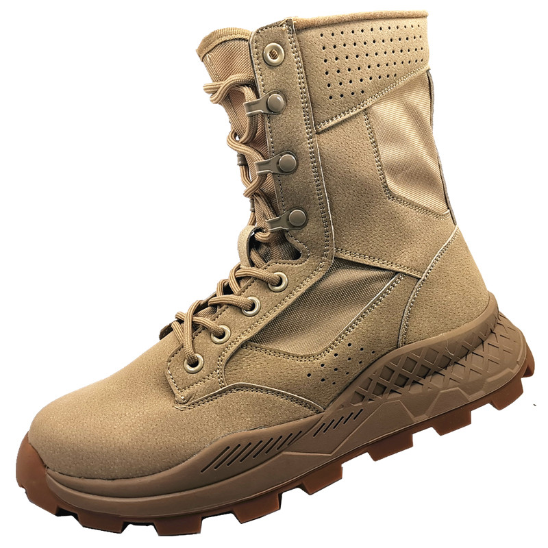 Spring and summer mesh breathable sand color combat boots men's outdoor lightweight hiking hiking training shoes desert boots Martin boots