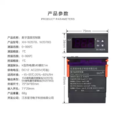 W2078-DC12VW2078-AC220VW2078G-DC12V with high temperature alarm output W2078G-AC220V with high temperature alarm