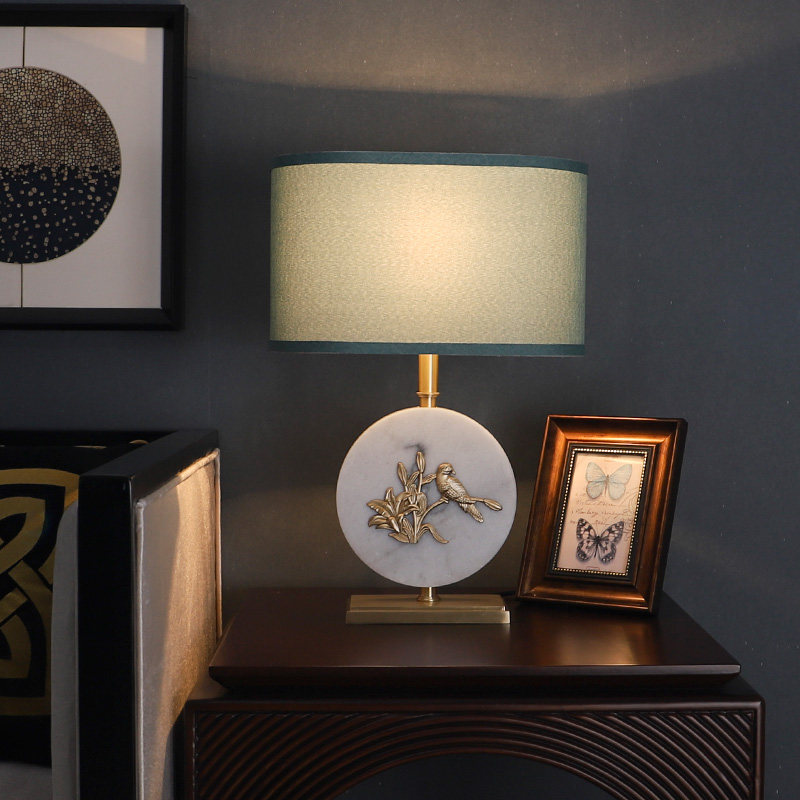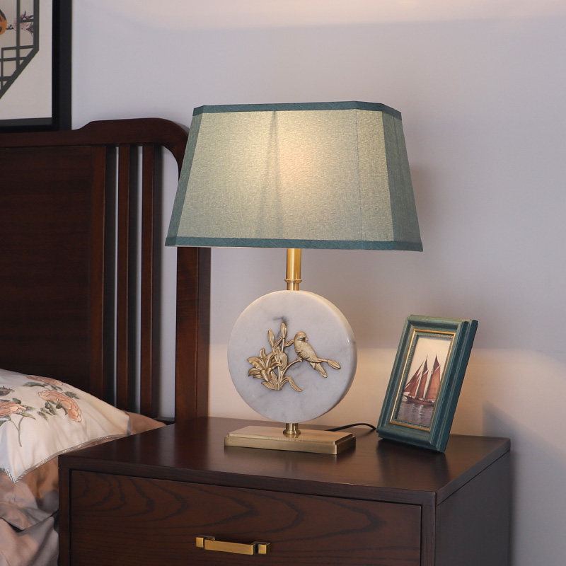 New Chinese-style all-copper table lamp bedroom bedside lamp retro living room dimming simple modern light luxury bird Zen table lamp