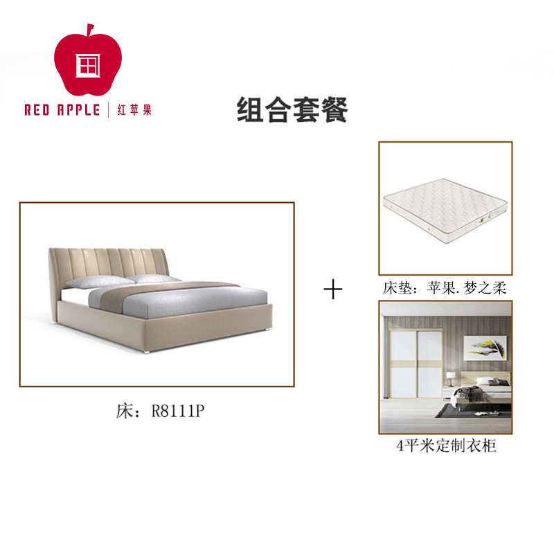 Red Apple Furniture Master Bedroom 3 Pieces Package Cloth Art Soft Bed R8111P Dream Soft Latex Mattress 4 flat