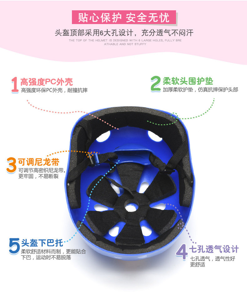 Blue A3 Helmet + Blue Protective Gear 6-Piece Set (S Size 3-5 Years)