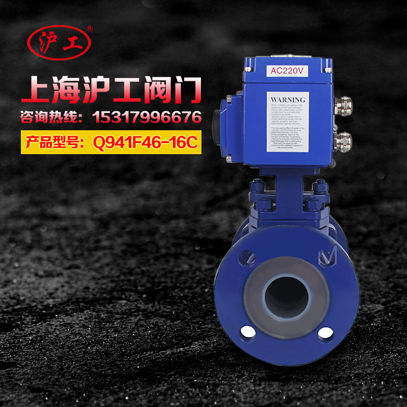 Shanghai Shanghai Shanghai Shanghai valve Q941F-16C cast steel flanged fluorine electric ball valve acid resistance and resistance to tubes 200V 380V