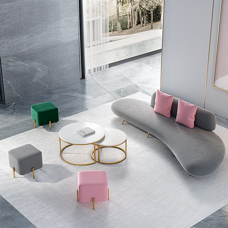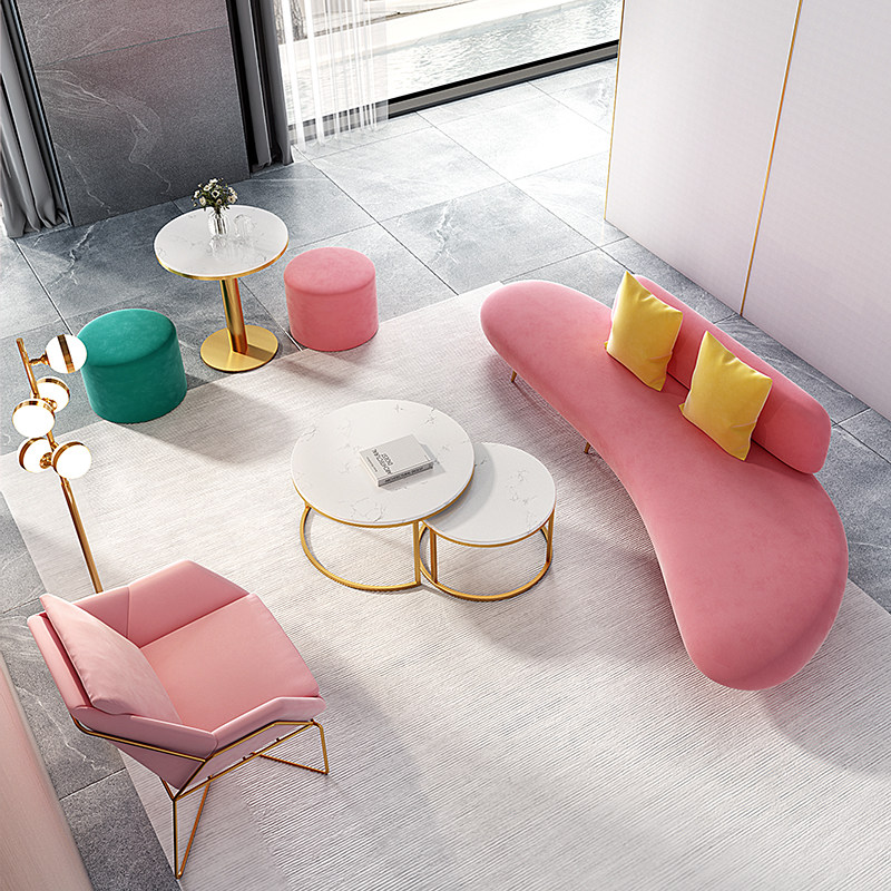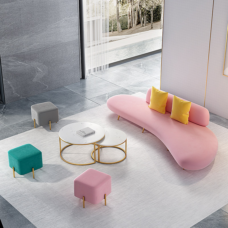 2.5 meters gray special-shaped sofa 2 square stools curved stool mother and child tea table 2.8 meters pink 2 square stools curved stool mother and child coffee table 2.8 meters pink special-shaped sofa 3 square stools