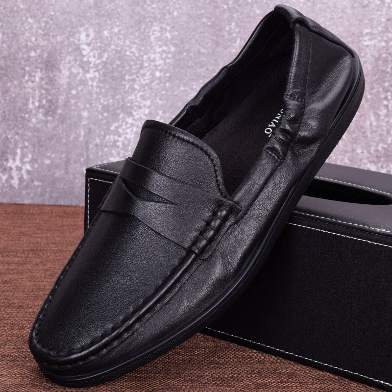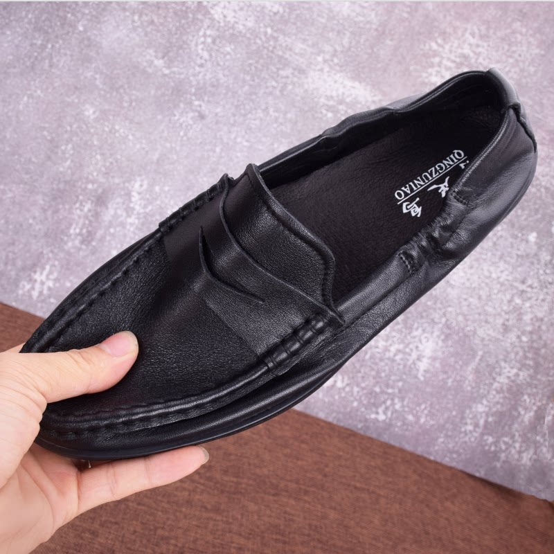 Summer beanie shoes men's single layer top layer cowhide men's leather shoes leather soft bottom driving shoes soft leather slip-on shoes