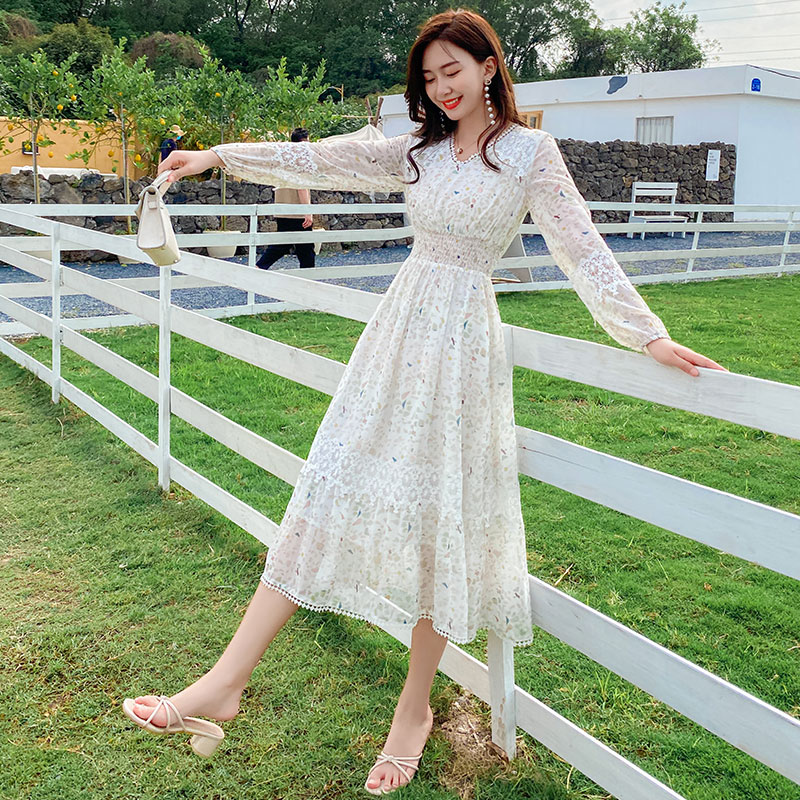 Malcenl Klon 2020 summer high-waisted dress very fairy floral Chiffon belly thin new dress