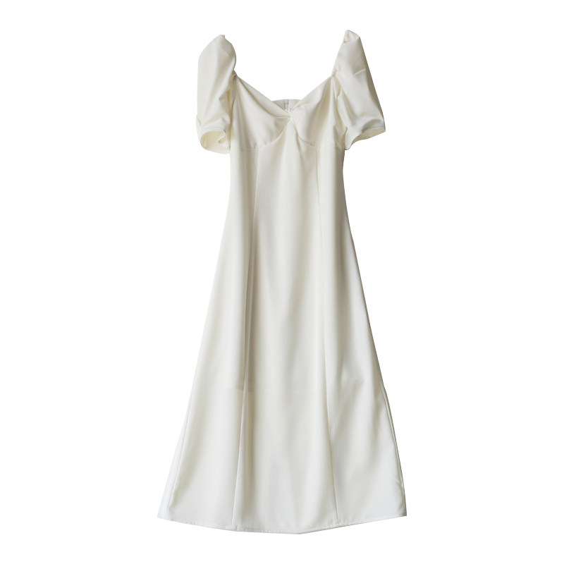 S AUTUMN You're not like anyone French retro white dress kink waist square collar mini dress