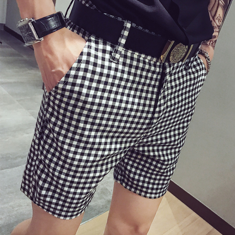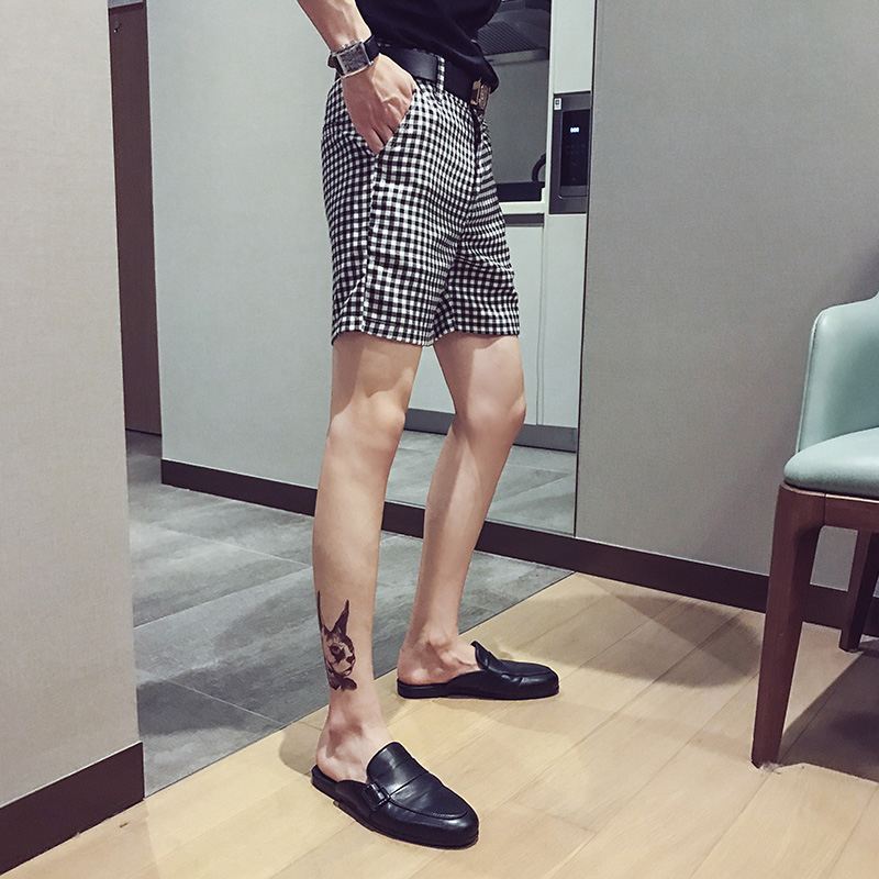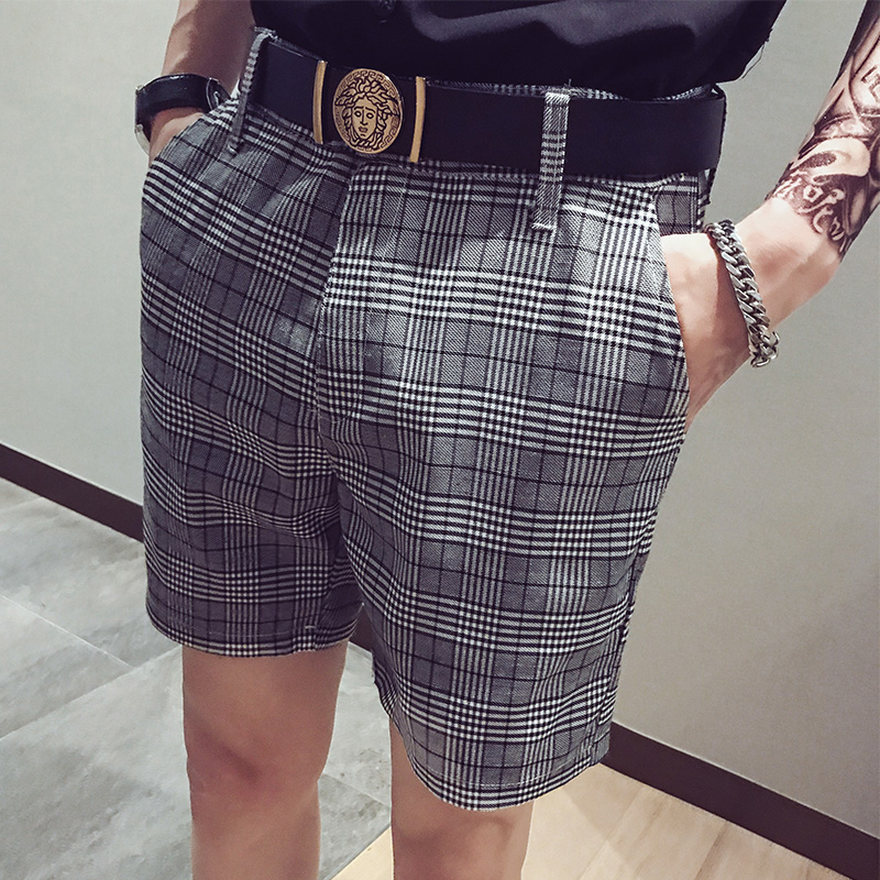Society Little Guy Suits Shorts Men's Body Uppie Summer 30% Pants Slim Fit Plaid Western Pants Trendy Casual Mid Pants-Taobao