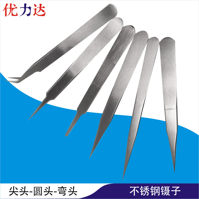 Stainless steel tweezers thickened high-strength precision anti-magnetic pointed head flat head round head elbow high elastic flexible light riding tweezers
