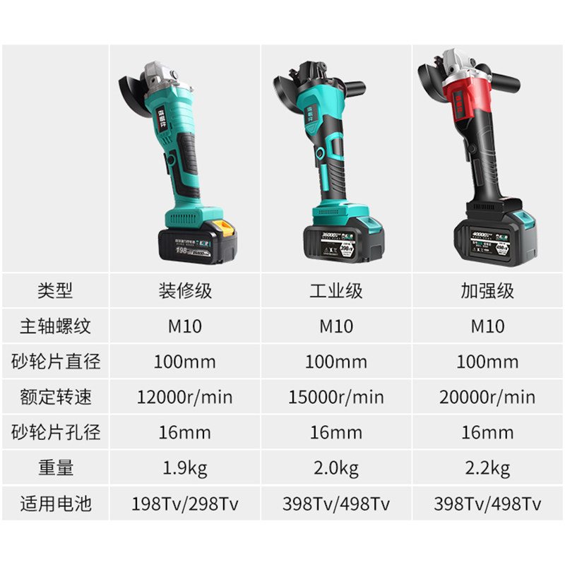 Decoration-grade angle grinder 198TV, one battery and one charge, decoration-grade angle grinder 198TV, two batteries and one charge, standard decoration-grade angle grinder 198TV, two batteries and one charge package