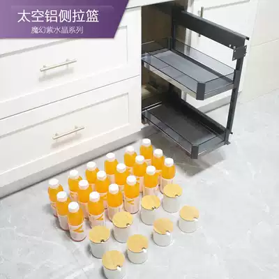 Integral cabinet pull basket small apartment small seasoning basket kitchen integral cabinet glass pull basket drawer side pull basket damping storage rack