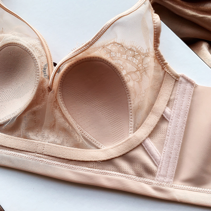 Crystal cup ultra-thin incognito underwear 90ab sexy lace bandeau bra Breathable gathered sub-breast adjustment bra