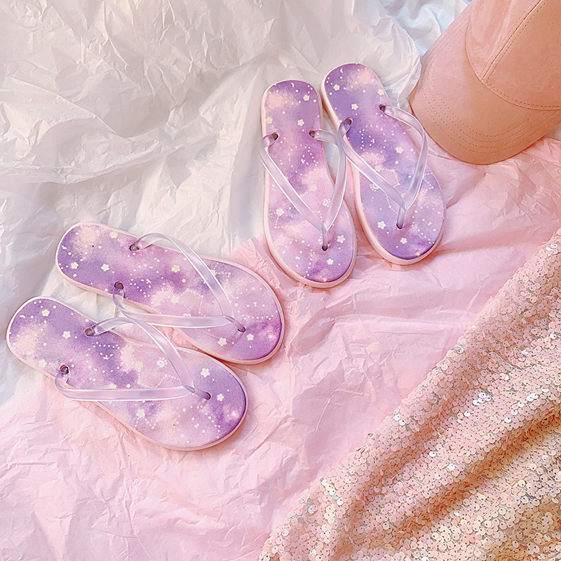 With Cat Addiction Catenergy Big Orange Constellations Starry Herringbone Sandals Shoes Beach Shoes Non-slip Home