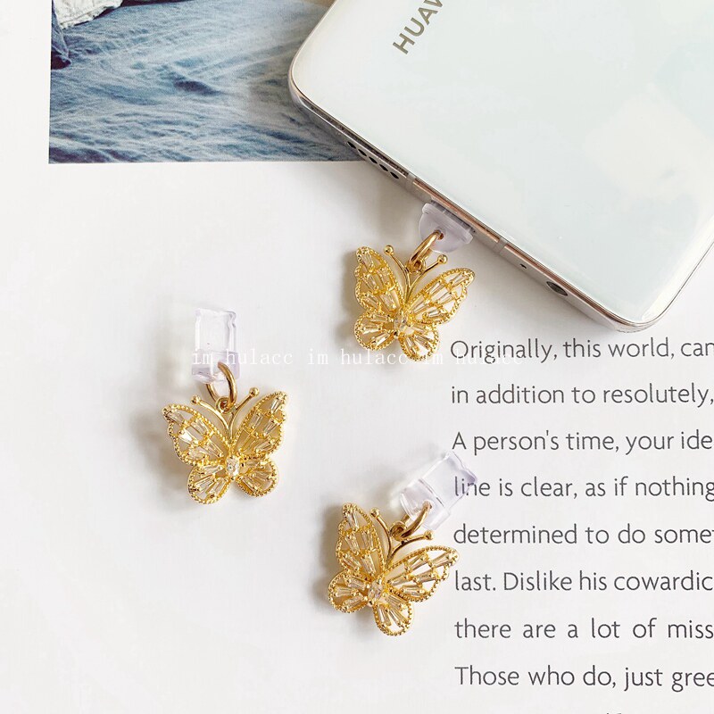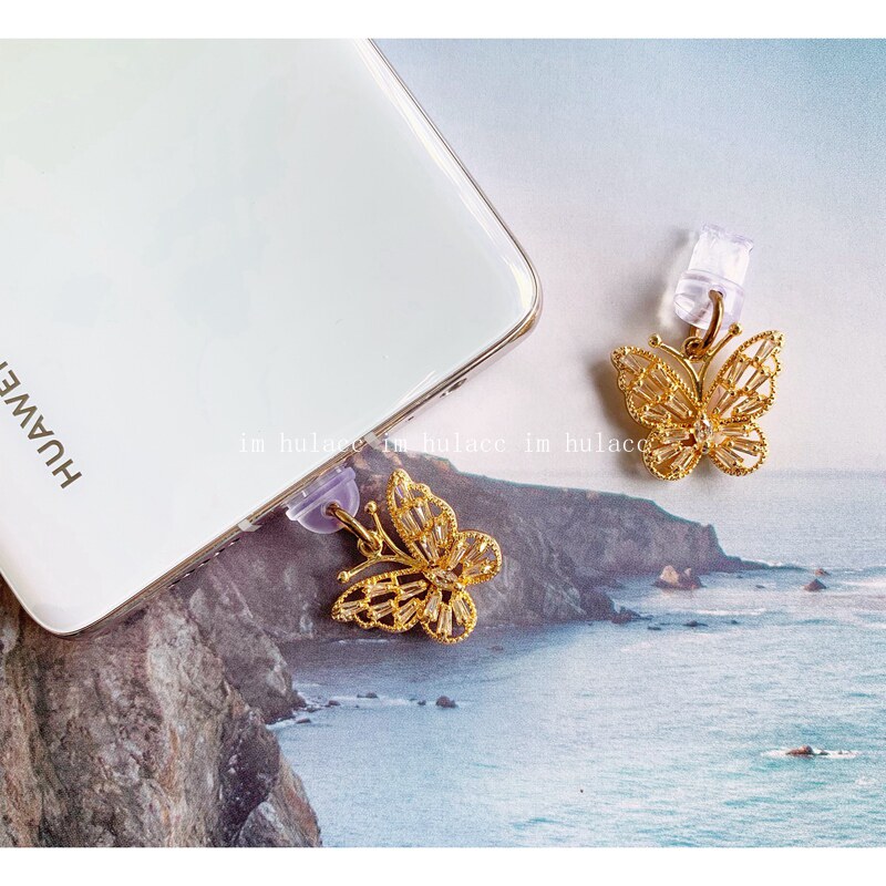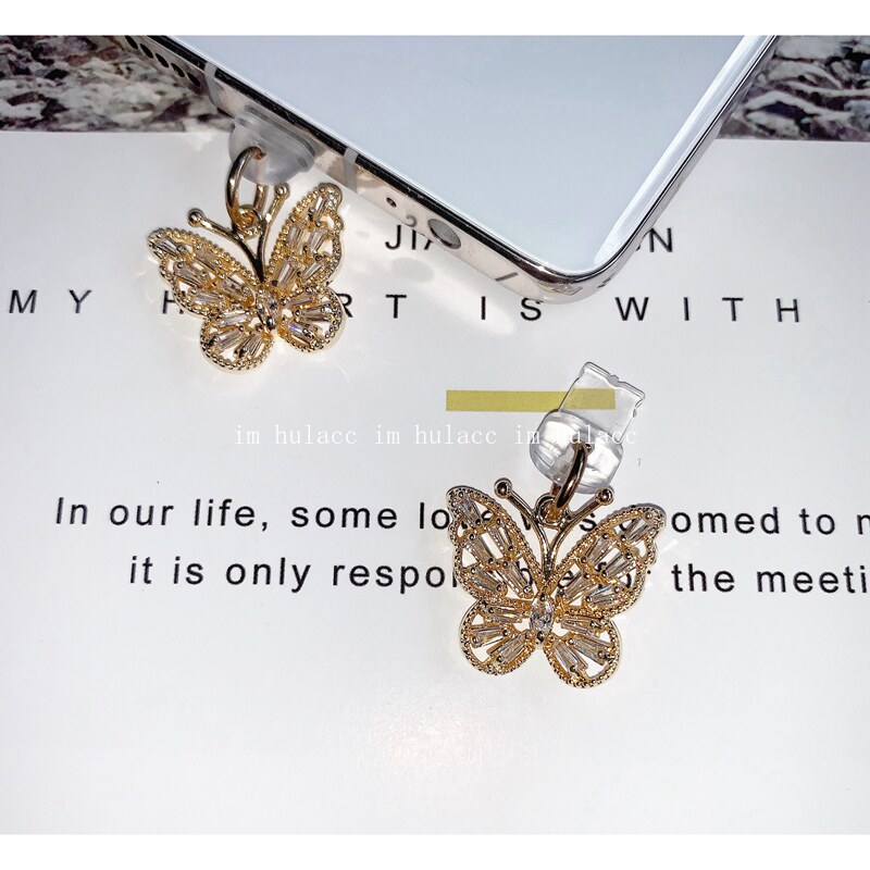 Original phone headphone anti-dust plug temperament water drill butterfly suitable for Huawei Apple Android type-c data plug