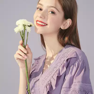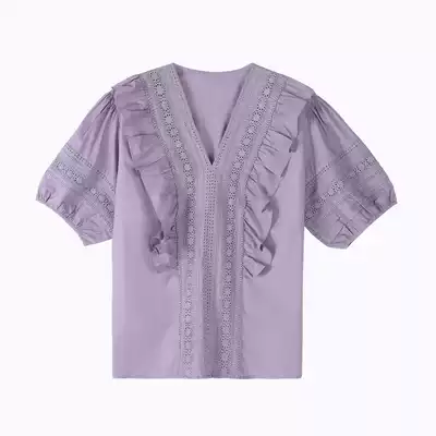 Qiushui Yiran short sleeve shirt summer 2021 new women's French retro V-neck top bubble sleeve shirt