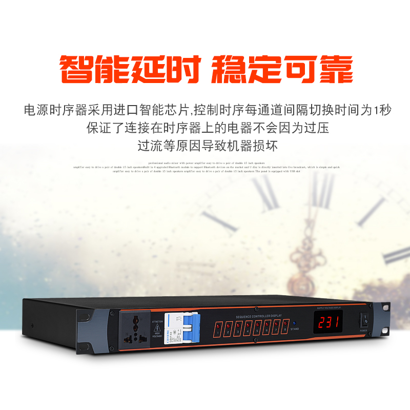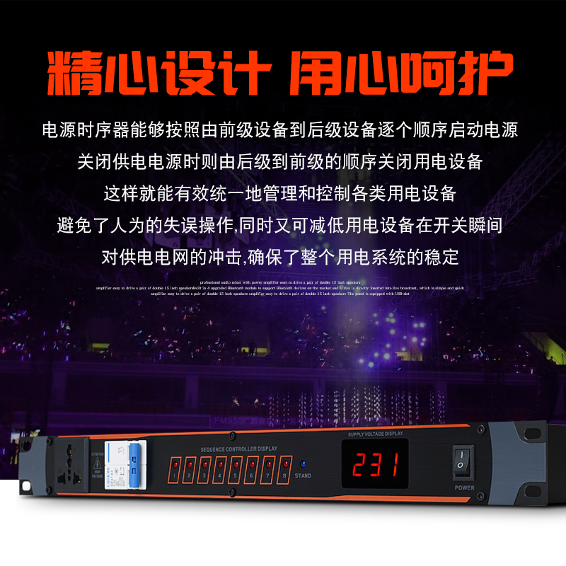 Professional 8-way power sequencer stage conference equipment socket sequence controller 10-way with air switch