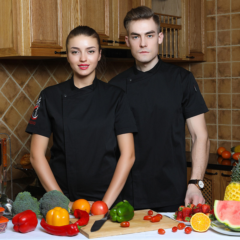 Chef costume men short sleeves summer breathable Chinoiserie hotel dining room kitchen slanted collar large size top custom women
