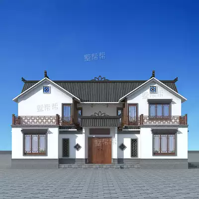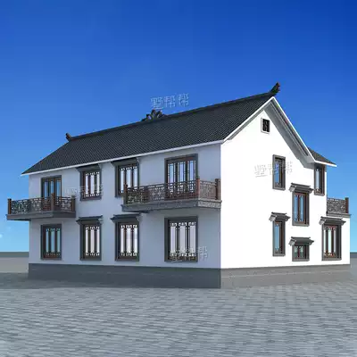 Rural self-built house two-story courtyard drawings Full set of construction and renderings Two-story practical house design drawings