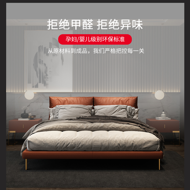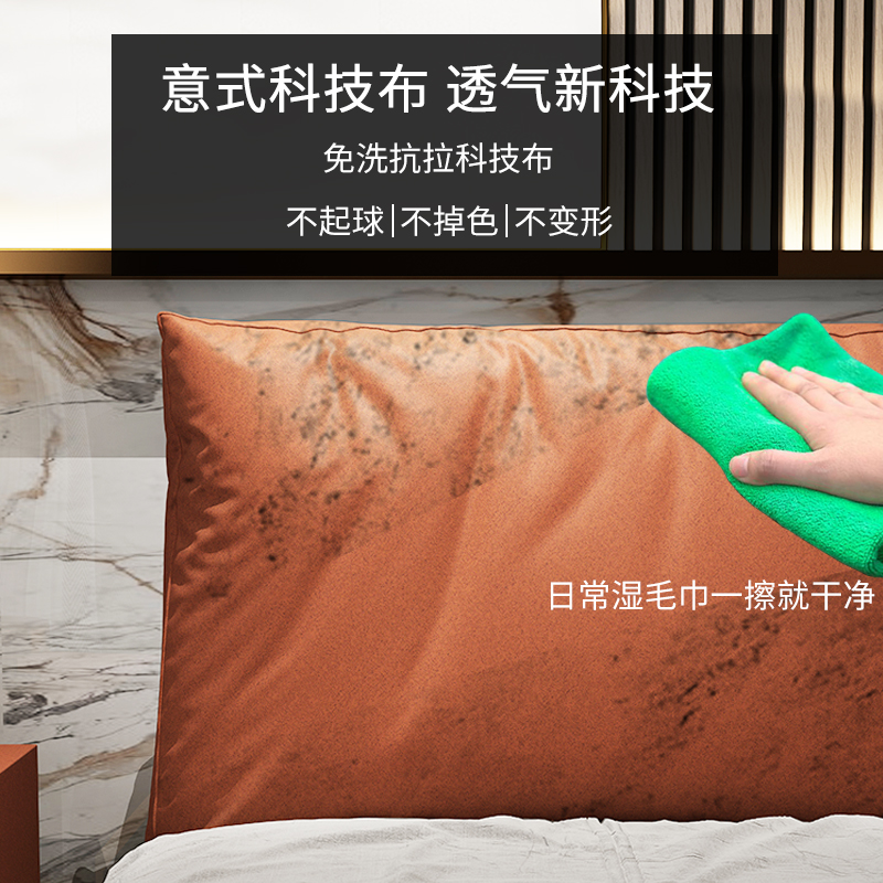 Nordic cloth bed Italian simple disposable technology cloth bed light luxury modern small apartment master bedroom double soft bag wedding bed
