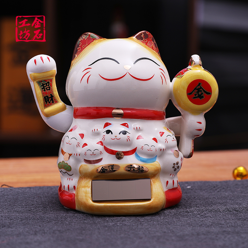 Solar energy lucky cat small ornament trumpet office mini shaking hand recruiting cat promotion gift automatic beckoning small