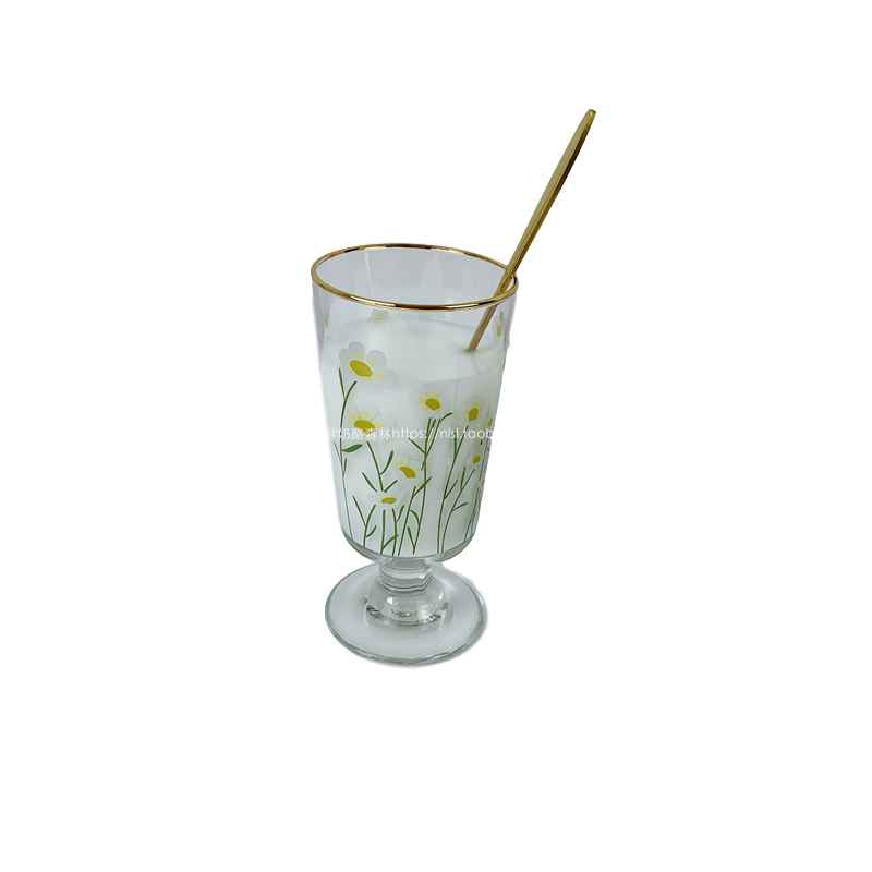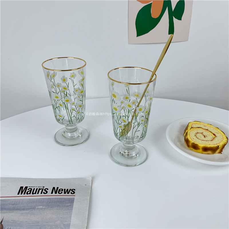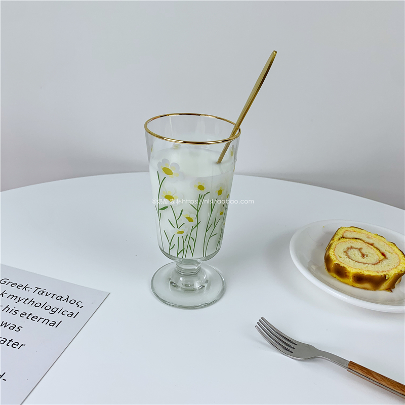 ins same small daisy retro high foot cup Phnom Penh glass mug glass milk cup girl's heart dwarf goblet