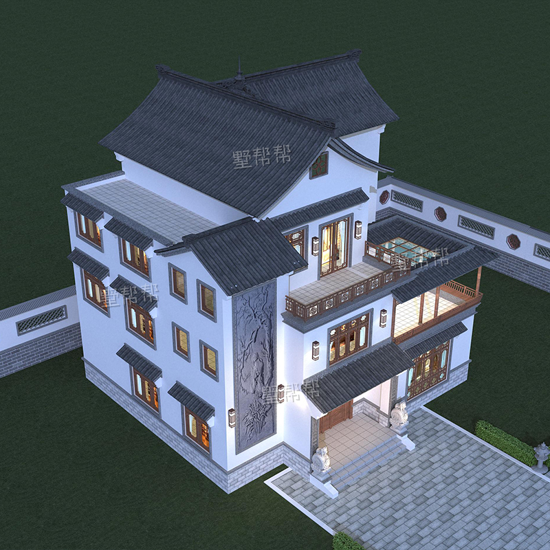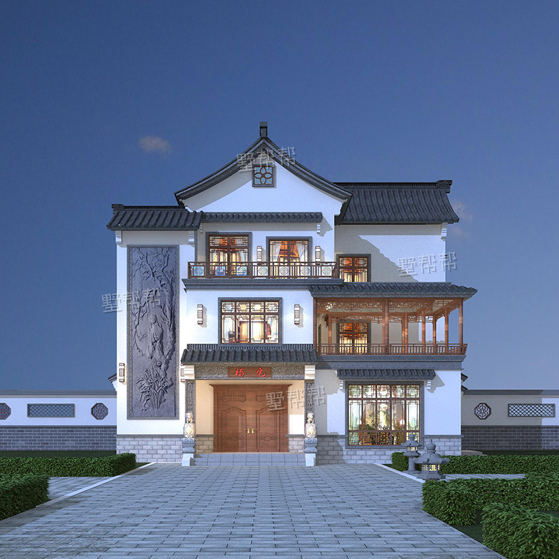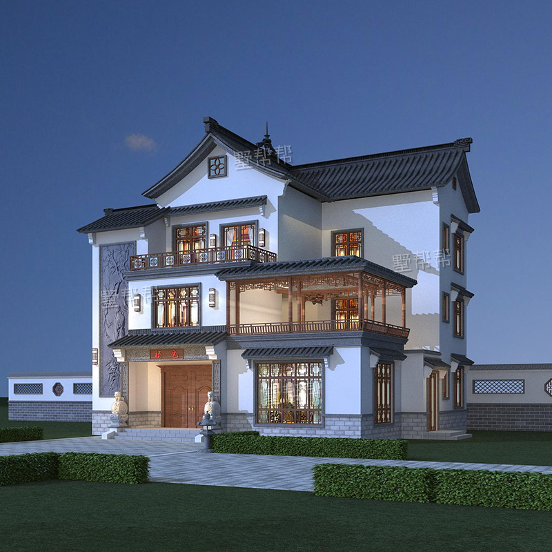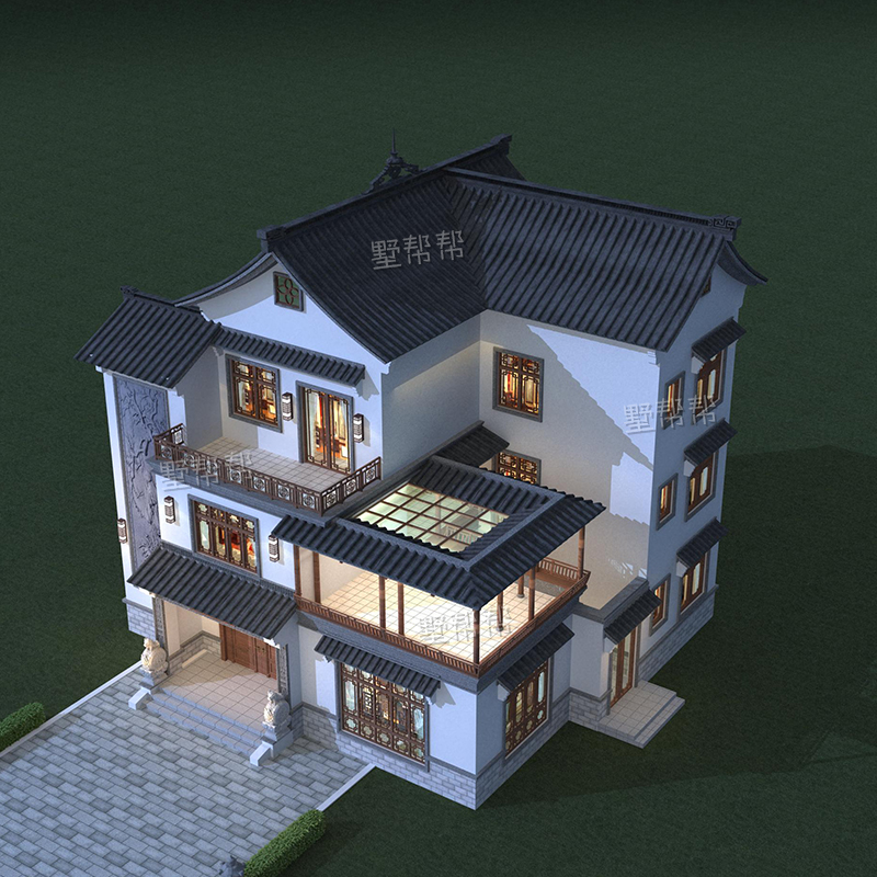 Three-storey Chinese-style courtyard villa design drawings Rural building from the house full set of construction 20180 villa gang