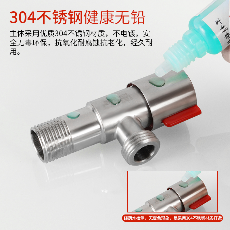 Hot and cold water 304 stainless steel triangular valve Home dress 4 Thickened Explosion-proof dressing room One-in-the-out single-control water-stop valve