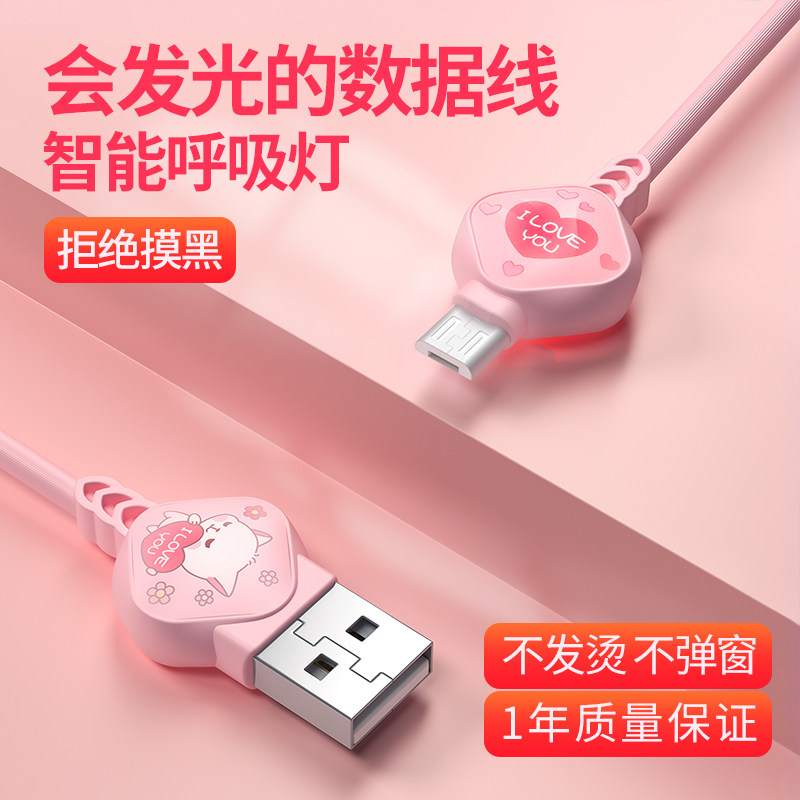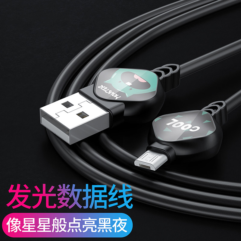 thiniloo Android data line luminous charger usb universal fast charge flash for Xiaomi Samsung oppo Huawei vivo cool send mobile phone mobile charge lengthened single head 2 m short