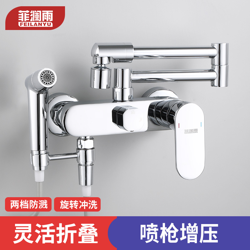 Entrance Wall Type Kitchen Hot And Cold Taps Multifunction Lengthened Folding Wall Double Holes Wash Vegetable Basin Washing Machine Mop Pool