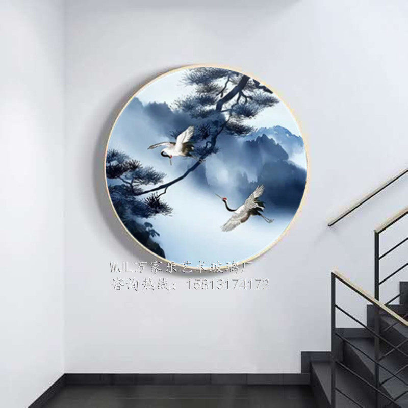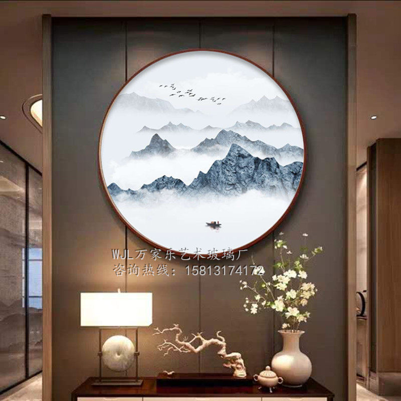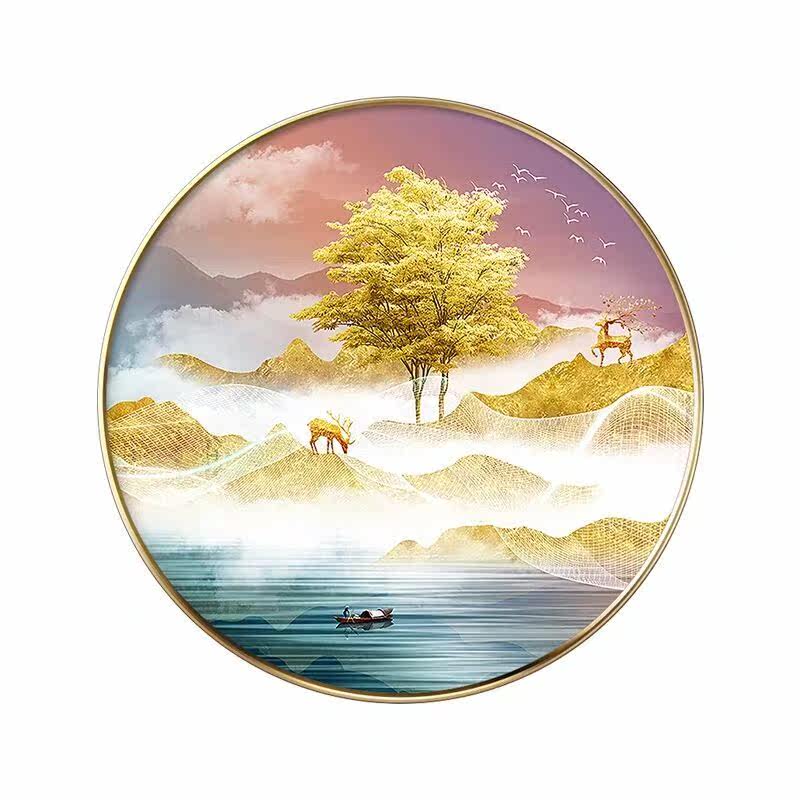 New Chinese 3D Living room Decorative Painting Background Wall Brief modern Tea Room Hanging Painting Book House Landscape Round Art Glass