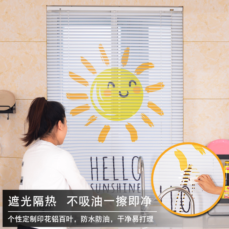 Printed aluminum alloy shutters toilet kitchen waterproof blackout free punching bathroom toilet windows blocking curtains