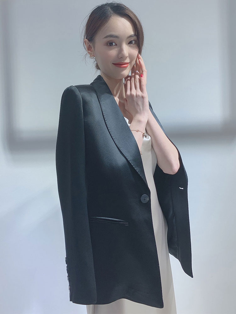 High level Sensation Acetate small suit Women's thin satin coat jacket 2022 Western suit Loose Glossy and Glossy Celebrities TEMPERAMENT