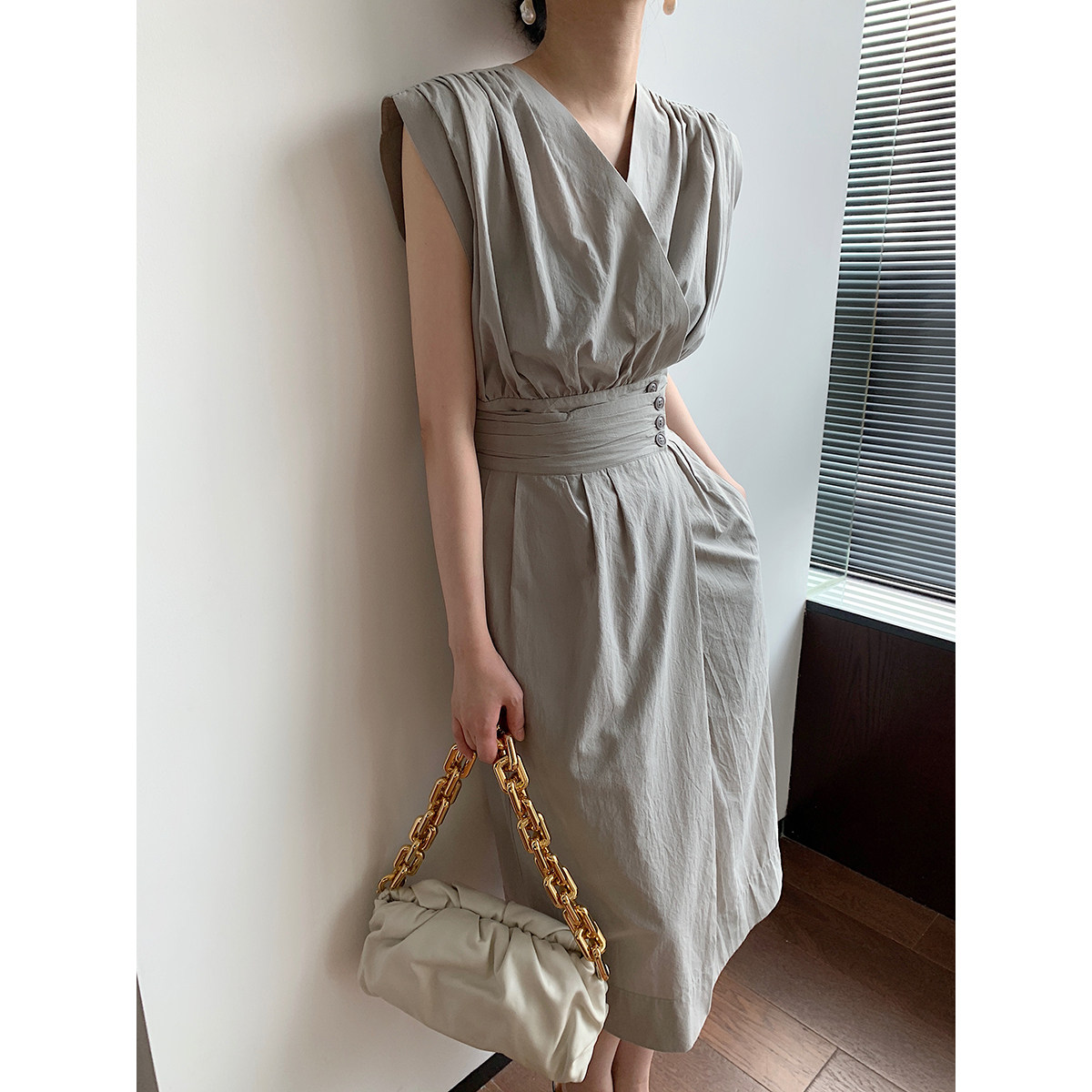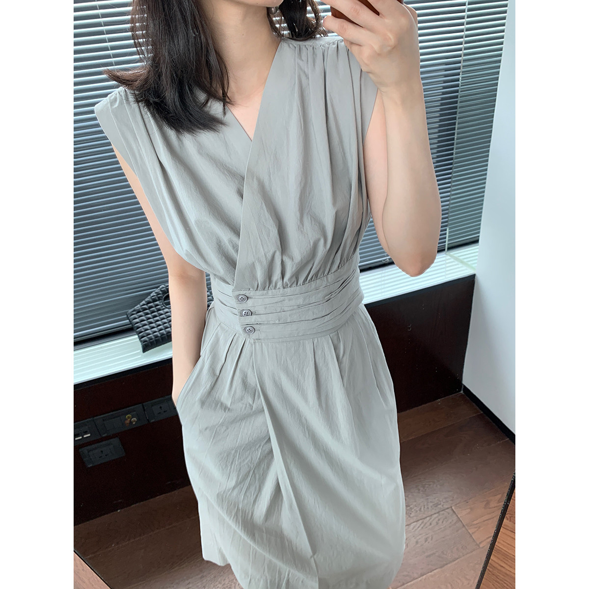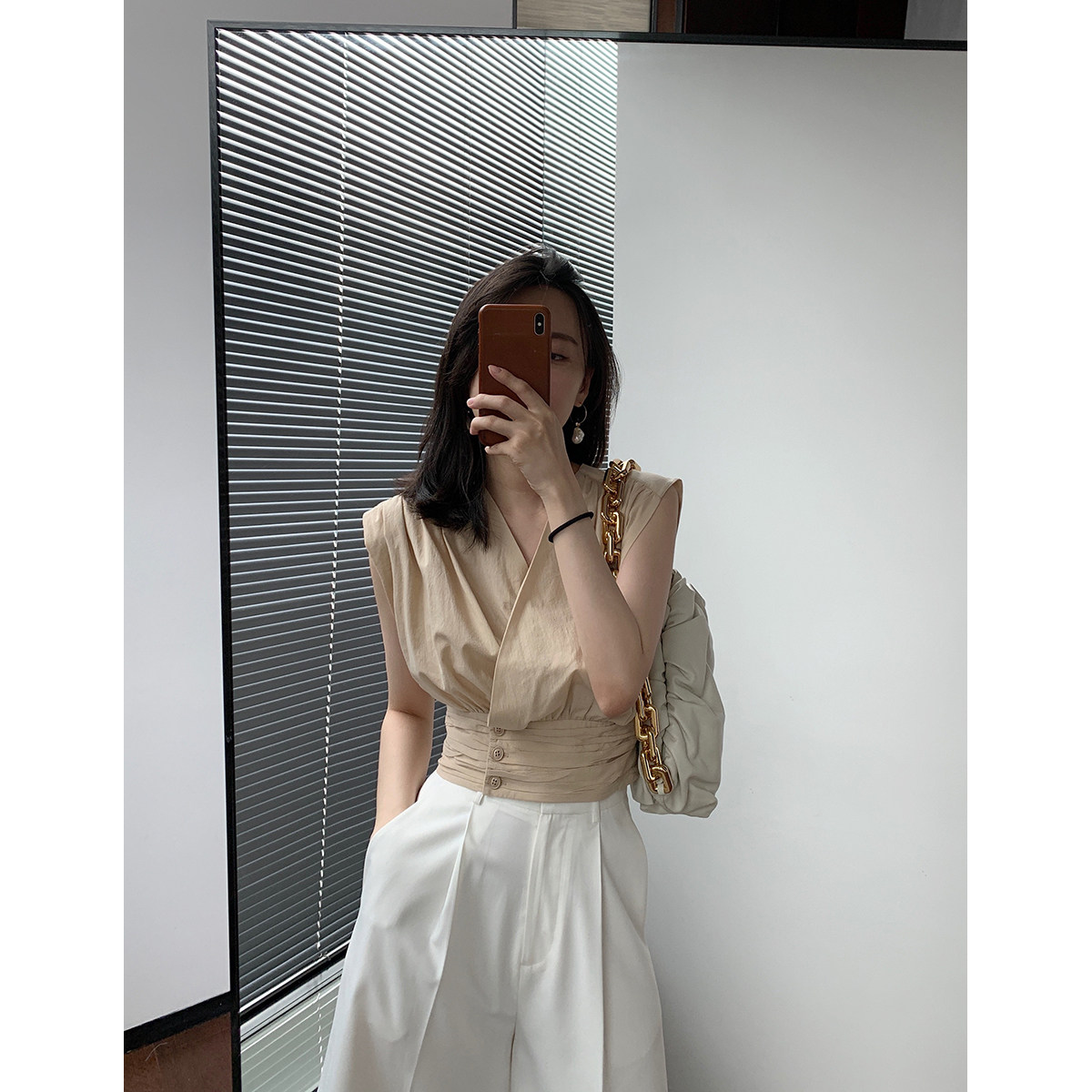 Amyy Studios ex-gratia 7 fold no deback pleated waist seal sleeveless jacket half skirt suit unsold