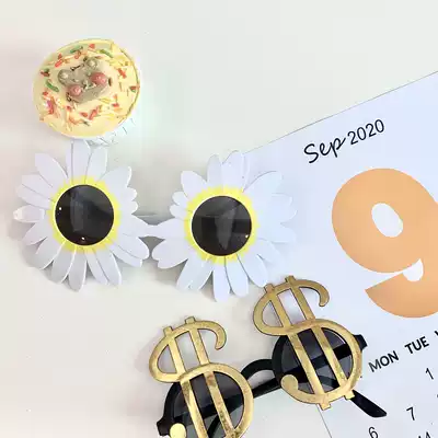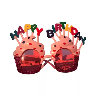 ins Net red happy birthday glasses funny little red book with cake decoration party selfie photo props
