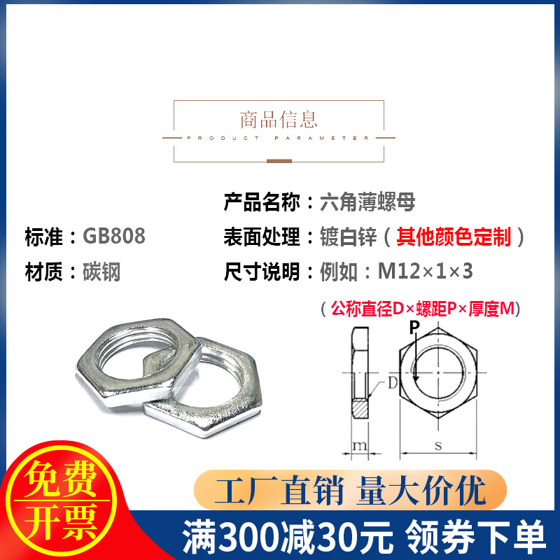 GB808 Hexagonal ultra-thin fine tooth flat nut cap M6*1 M8*1 M9*0 75 M10*1 M12*1 M14*1